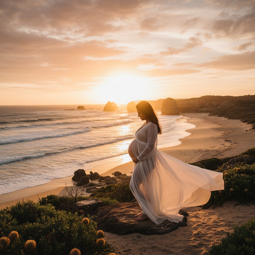 Australia is renowned for its breathtaking coastline, making our iconic beaches perfect settings for a serene and radiant maternity photoshoot. Imagine the golden sands of Bondi, the sparkling waters of the Gold Coast, or the pristine stretches of Perth’s coastline providing a magnificent natural studio. The best times for beach shoots are undoubtedly sunrise or sunset, when the light is soft, warm, and creates that coveted ‘golden hour’ glow, perfectly complementing the tenderness of your pregnancy.