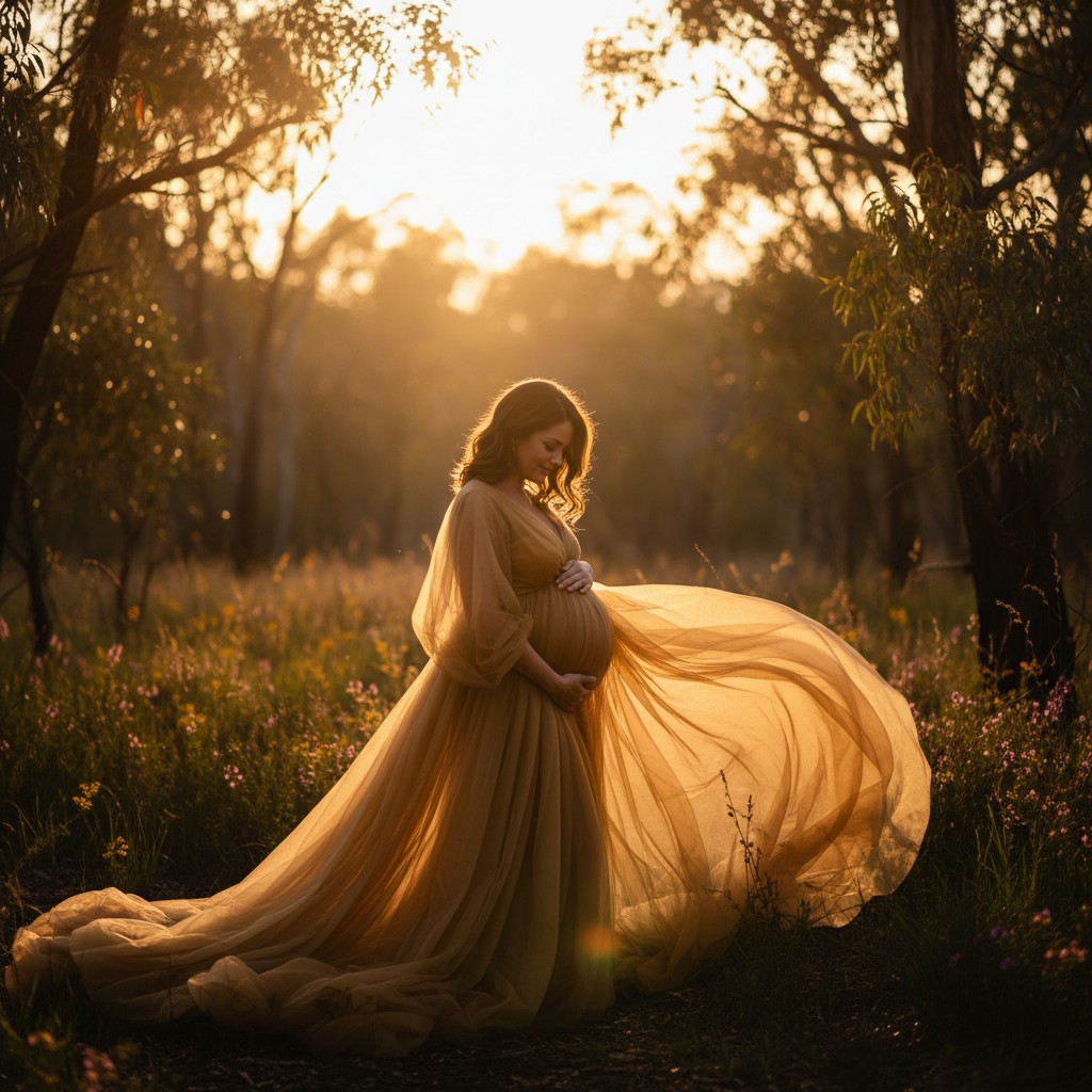 Floral crowns and bouquets add a romantic, natural touch, especially beautiful with Australian native flowers for a local feel. Wide-brimmed hats are perfect for outdoor or beach shoots, offering a chic element and sun protection. For shoes, barefoot looks are wonderful for beach or studio shots, while comfortable, elegant flats or heels can complete an outfit for other locations. Don’t forget props! Ultrasound photos, tiny baby shoes, a soft blanket, or even a meaningful item for the baby’s nursery can add a heartfelt, personal dimension to your pregnancy photoshoot.