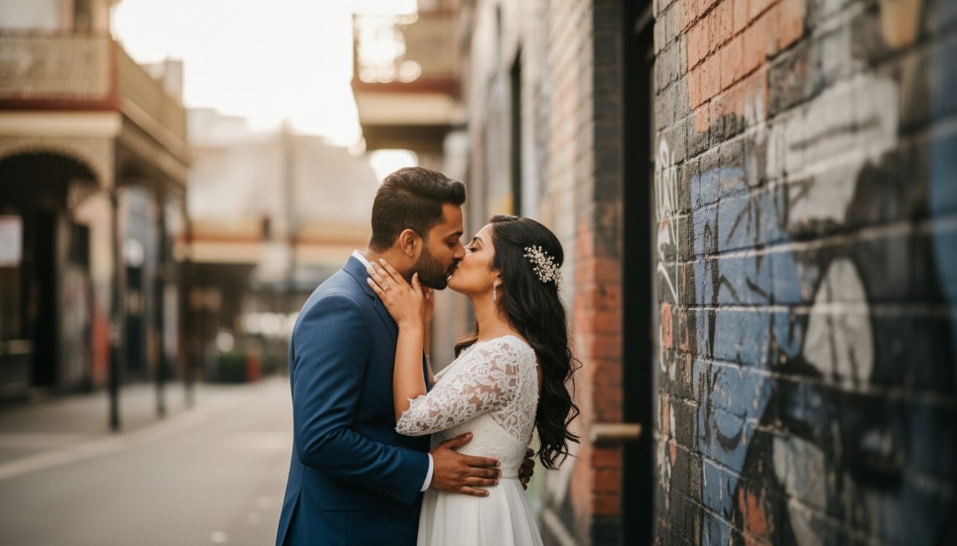 Venue Matters: Melbourne’s diverse venues lend themselves beautifully to different styles. A classic style would perfectly complement the grandeur of Parliament House, while a fine art approach would be stunning amidst the lush beauty of Fitzroy Gardens. For the vibrant energy of CBD laneways or the industrial chic of The Wool Mill in Brunswick East, a candid or editorial style would truly shine. When searching for ‘studios photography’ or ‘studio for photography’ for a pre-wedding shoot, consider how the studio’s aesthetic aligns with your venue.